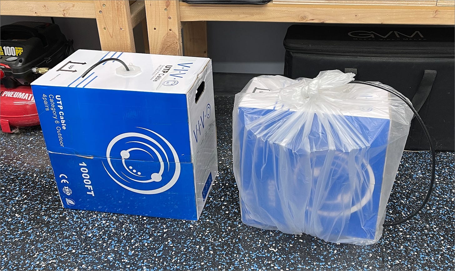 We used up our first 500-foot box of cable and switched to a new 1,000-foot box.