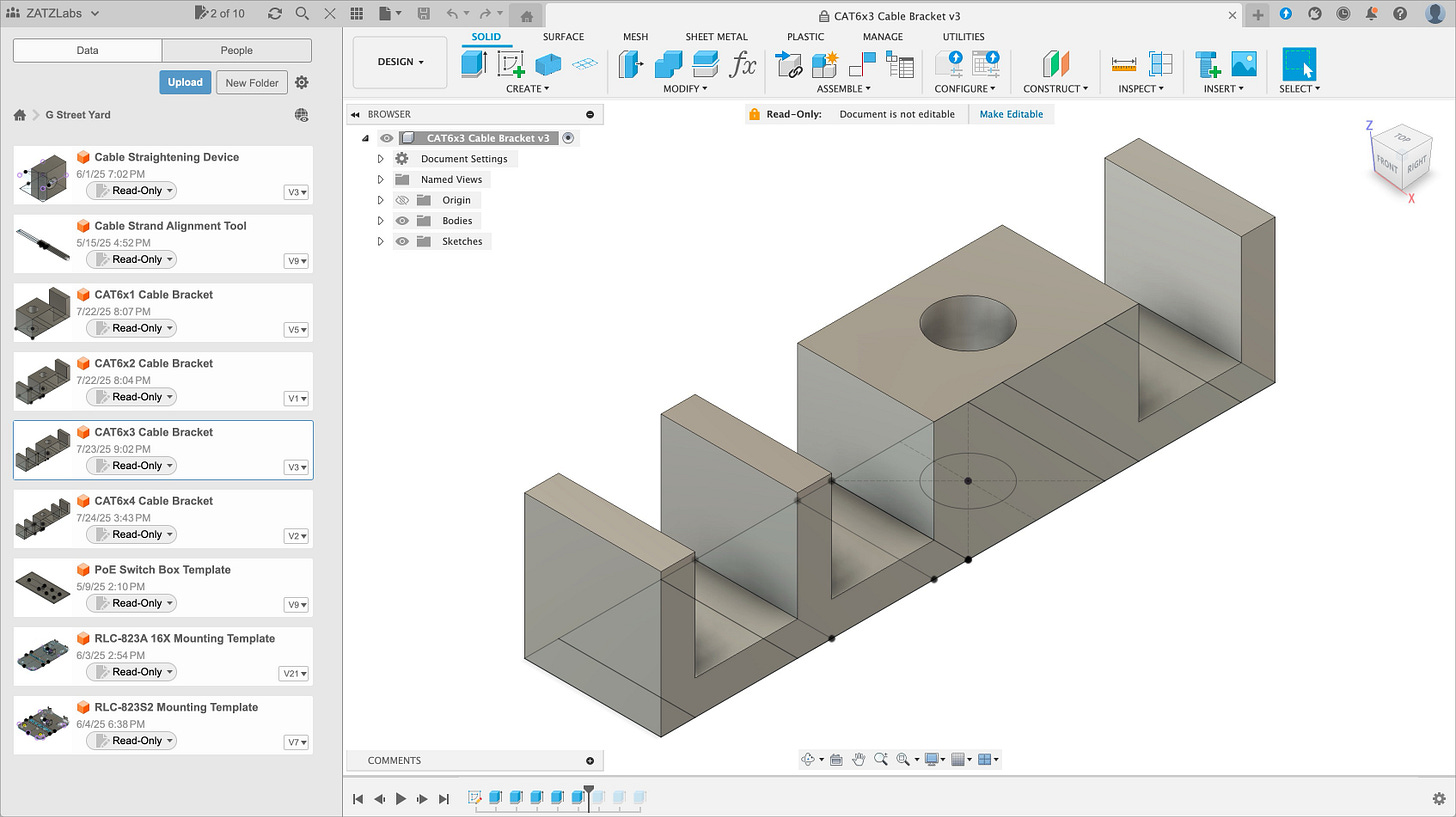 So I jumped in Fusion and modeled up a holder that had space for a screw (concrete or wood) and slots that could range from one up to four (and could be more if I wanted).