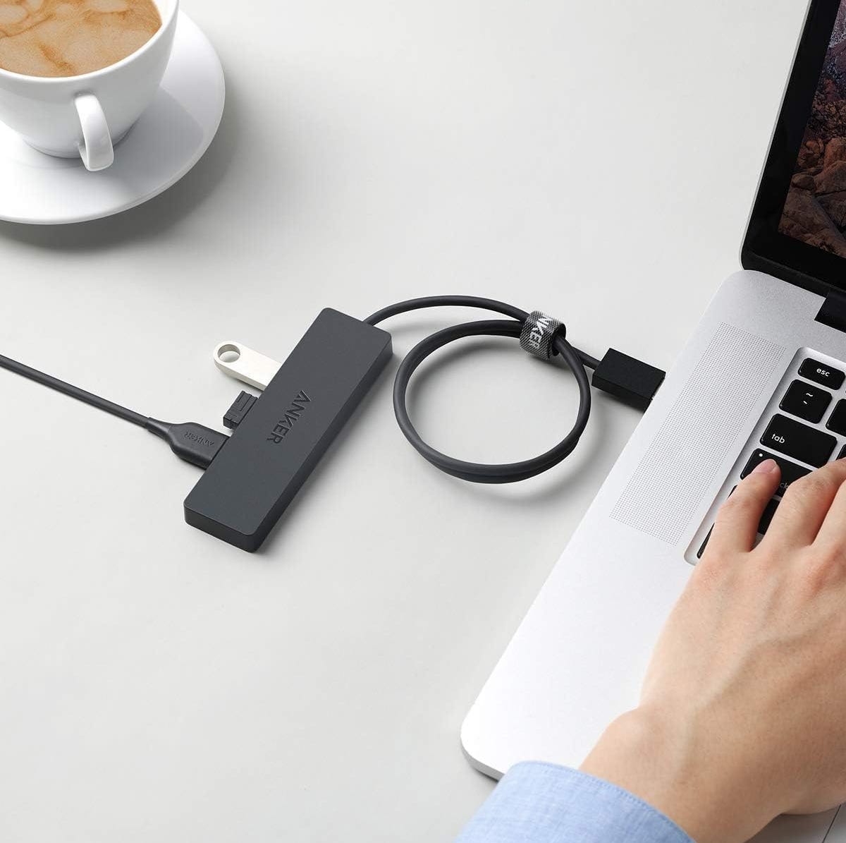 This is the Anker USB hub we’re using in our new scanning station. The reason I’m sharing this with you is that, unlike every other USB hub we’ve tried, this one allows all the devices to connect into it, rather than needing to go directly into the computer. That even includes the scanners.